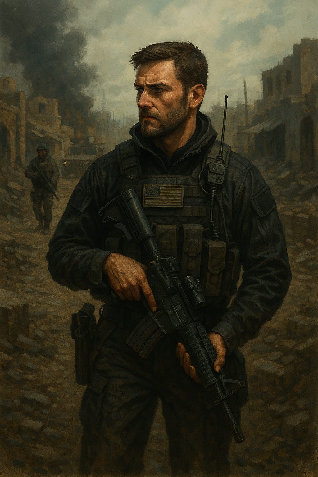 I watched the shimmer just beyond the wreckage, the kind of shimmer that doesn’t belong to heat. My trigger finger felt the pull of electricity. I saw the dart—green-blue edge, Technicratic signature. He didn’t see it. Not yet.