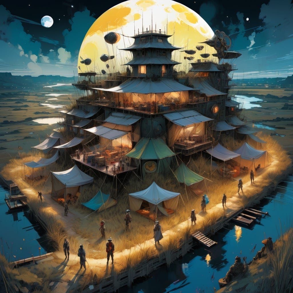 At this, the three men whom Earth supposed were court scholars fell into debate over whether chaos could actually exist at all. Their words knotted and unraveled, each speaking beyond the other. Soon no one appeared to be listening at all until at last their language stalled out in a snare that even they did not seem to fully understand.