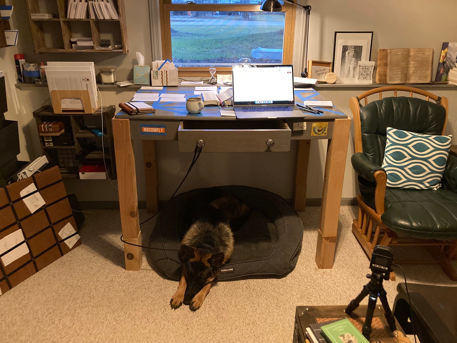 Hello everyone! It’s been a few weeks since I communicated with you all directly. At that time, over the Christmas holiday, I took on full mastery duties with our puppy/dog Aurelius. Raising a dog capable of being a service dog is no lightweight goal, but I have invested hours in classes with 815 local dog whisperer Ben Austin and I’ve seen enough success that I believe Aurelius will be an invaluable companion to me in my private battles with CPTSD. In this way, along with my work in Rockford and my family, his care has risen to the level of a primary life goal.