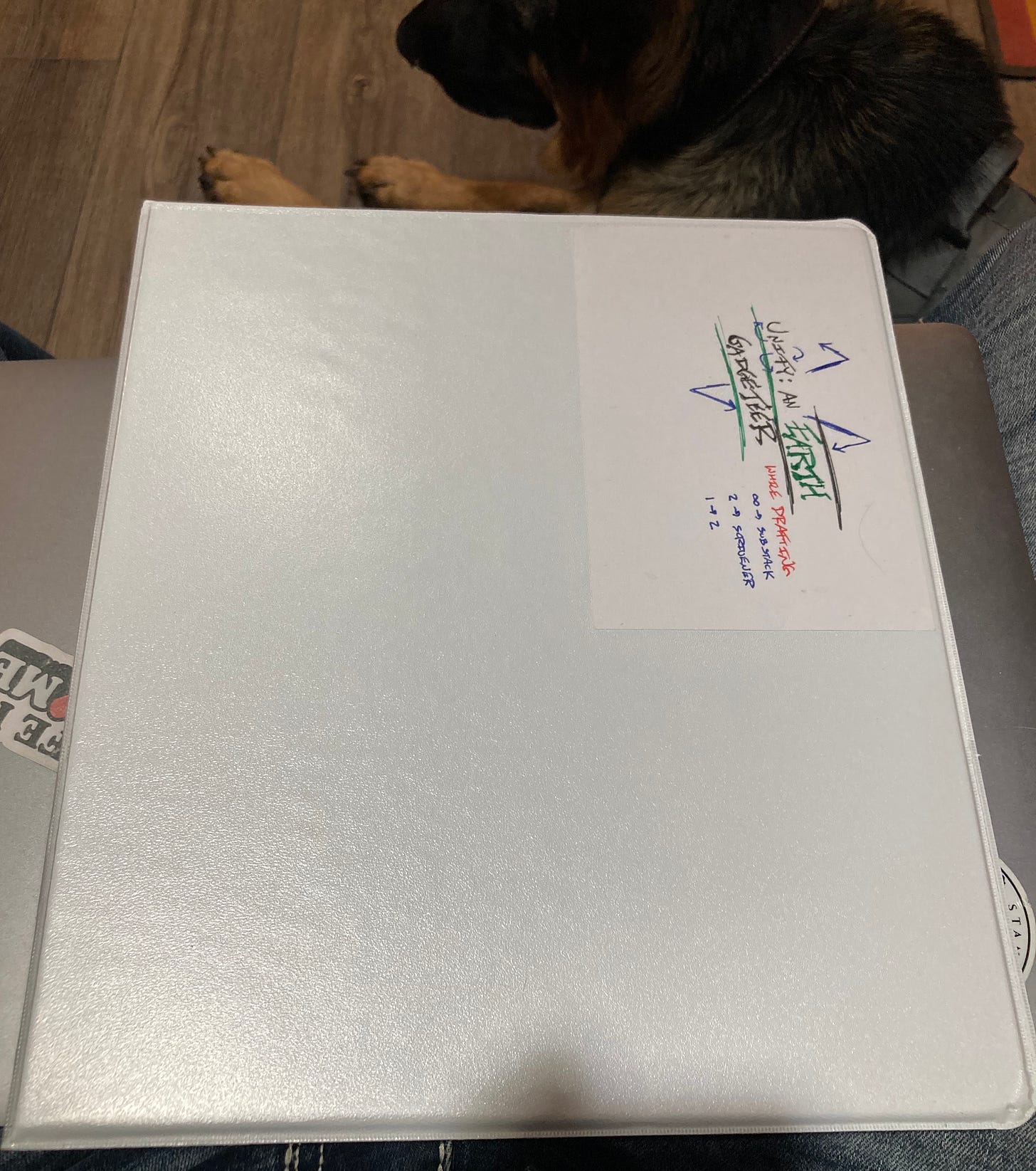 It’s a simple three ring binder, with a printed copy of all the most up to date public material form Earth.