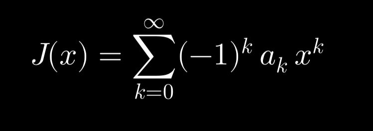 (Expanded J(x)=a_0 + a_1 x - a_2 x^2 + a_3 x^3 - a_4 x^4 + a_5 x^5 - a_6 x^6 + \cdots)