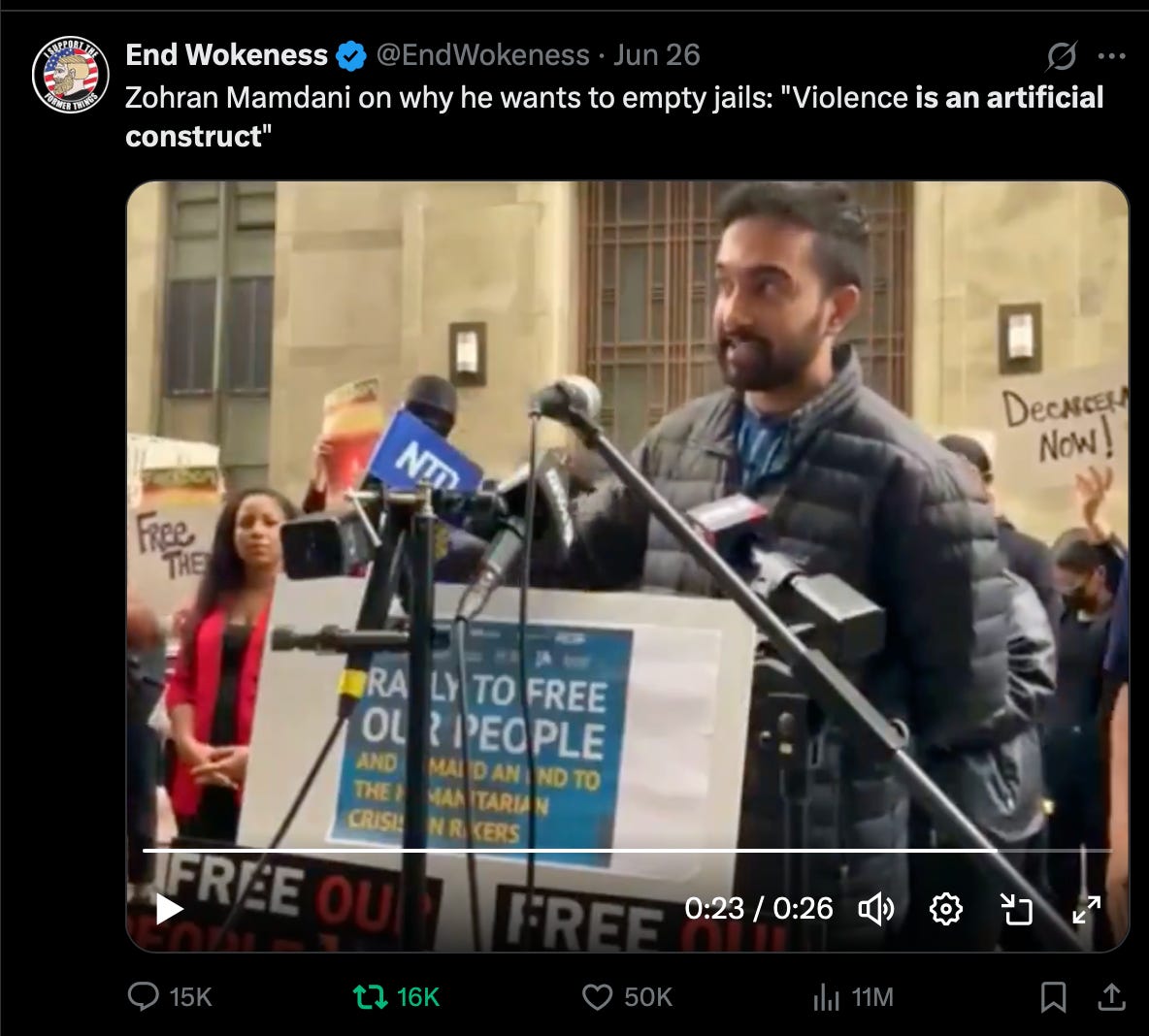Quoth the new Mayor of New York, “violence is an artificial construct.”